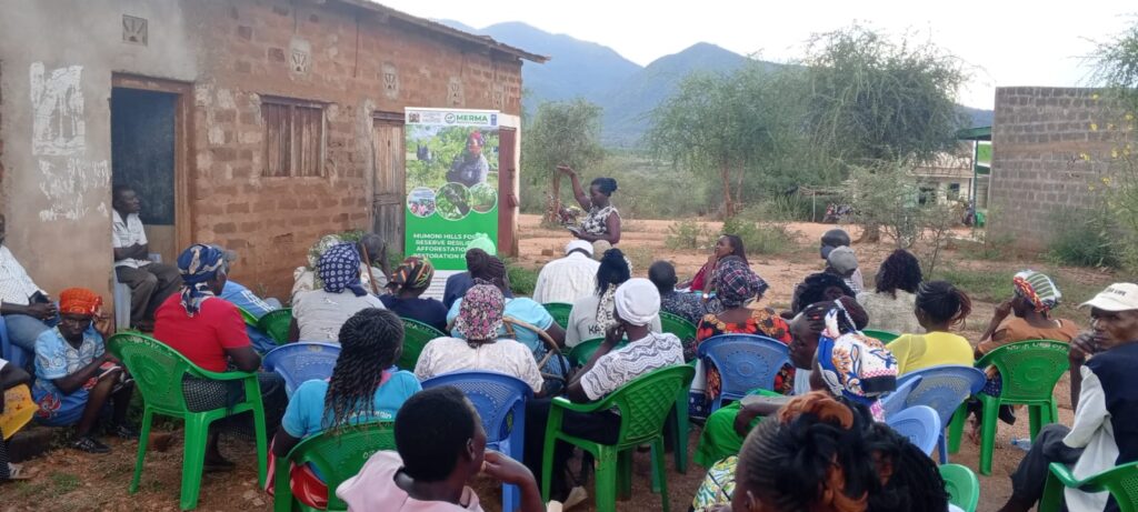 MERMA with funding by UNDP is implementing a Climate Promise Low Value Grant (LVG) at Mumoni in Mwingi North Sub – County in Kitui County. Climate Promise Programme is being implemented in over 100 countries globally. The main aim of this programme is to support developing countries enhance their Nationally Determined Contributions (NDCs). It has been recognized nature-based solutions are very efficient way to tackle climate change that has significant co-benefits for human well-being and biodiversity.